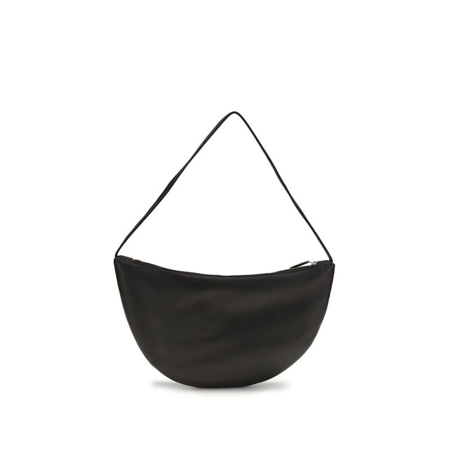 The Izzy Small Shoulder Bag by The Row is made of smooth leather and features the logo embossed on the front. It features a tonal leather flat handle and top zipper closure, combining minimalist elegance and functionality.