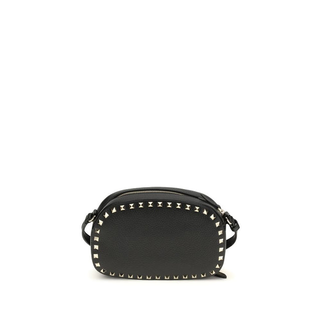 The Rockstud Shoulder Bag by Valentino Garavani is a mini bag in garnet calfskin, an elegant and bold accessory. It can be worn on the shoulder or cross-body thanks to the chain. The studs and metal parts have a platinum finish, adding a touch of luxury and character. The zipper closure completes the design while maintaining practicality and style.