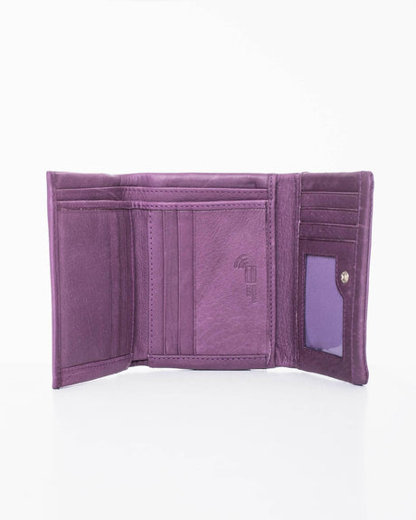 Læderpung NK304 (RFID-blokering) – Lilla, fremstillet i Europa | 12 kortpladser og ægte læder