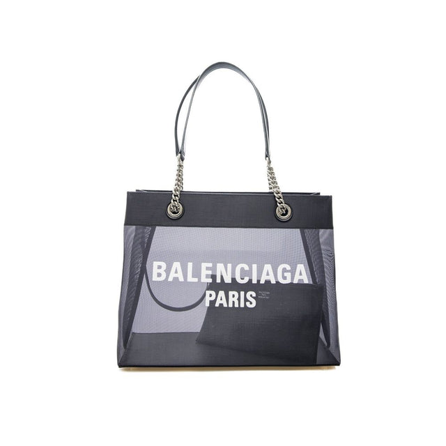 – Composition: 100% polyester – Leather details – Leather and chain strap – Transparent details – Contrast logo detail – Length 35 cm / 13,7 in – Height 27 cm / 10,6 in – Width 14 cm / 5,5 in – Made in Italy –