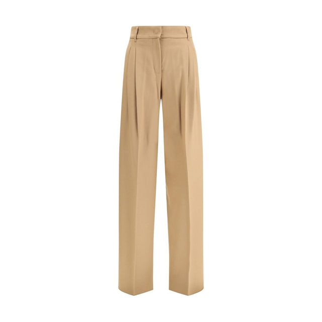 The Paride Trousers by Max Mara Studio embody relaxed sophistication and fluid elegance. Crafted from pure virgin wool drap, they feature a wide-leg silhouette and a softly flowing fit that moves effortlessly with the body. The matching coated fabric belt allows for a refined definition of the waist, while the double front pleats add subtle structure and volume. A high waistband with concealed zip and hook closure showcases precise tailoring, complemented by slanted side pockets and a pressed crease that enhances their polished look. Perfect for refined yet effortless ensembles, these trousers capture Max Mara Studio’s signature balance of comfort, craftsmanship, and timeless femininity.