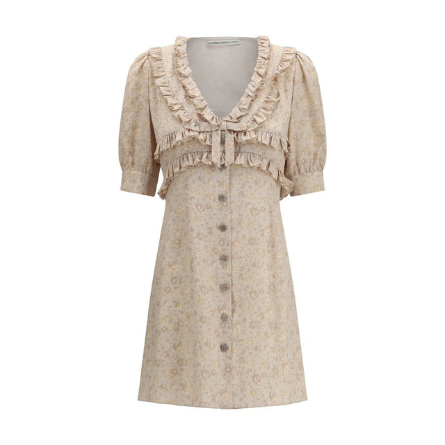 The floral Dress with ruffles, V-neckline and button fastening by Alessandra Rich embodies romantic elegance with a refined appeal. The floral print enhances the silhouette with a delicate feminine touch, while short sleeves and ruffle detailing add movement and lightness. This Alessandra Rich dress blends sophistication and character in a distinctive contemporary design.