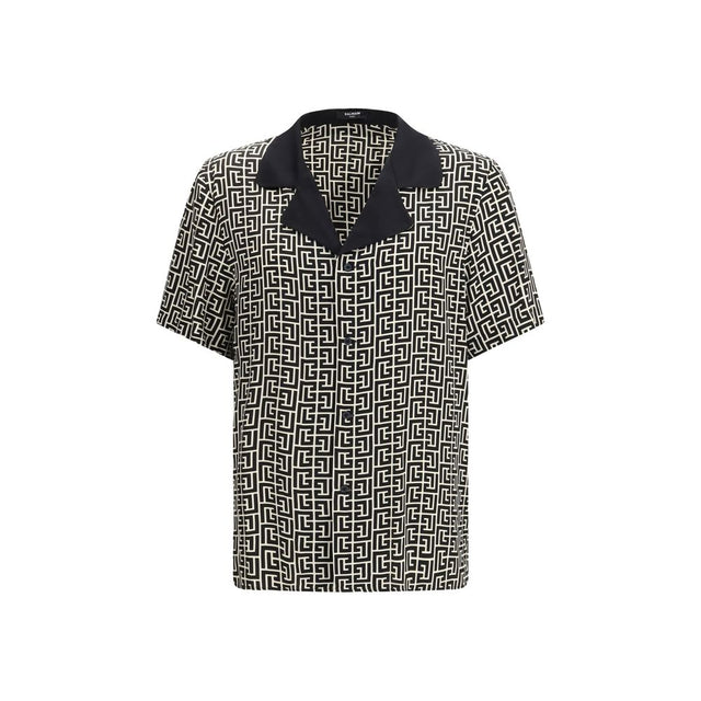 The monogram-print pajama Shirt by Balmain reinterprets a relaxed wardrobe essential with a sophisticated and contemporary aesthetic. Designed with a casual fit, it features a classic shirt collar and short sleeves with turned-up cuffs that enhance its effortless attitude. The PB Labyrinth monogram print defines the look, while the front closure with covered buttons and piped finishes add refined detailing. A shirt created for elevated yet relaxed styling with a distinctive signature.