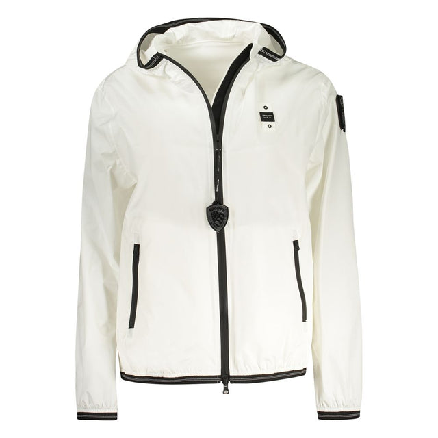 Dive into the epitome of sleek style with BLAUER’s long-sleeved waterproof jacket, perfect for fashion-forward individuals braving the elements. Tailored in a flattering slim fit, this pristine white jacket features a hood for added versatility. Practicality meets luxury with two external pockets, and an equal number of internal ones, ensuring your essentials stay dry and secure. The zip closure is smooth, while the removable rhinestone appliqué adds a touch of glamour. A subtle logo placement assures authenticity without overpowering the design’s sophistication.