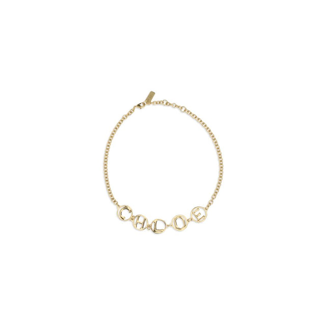 The Script choker Necklace by Chloé is crafted from Vintage Gold brass with the iconic circled Chloé letters and a refined hammered finish. Finished with a gold-tone Chloé logo plaque, it’s adjustable and adds an elegant and distinctive touch to any outfit.